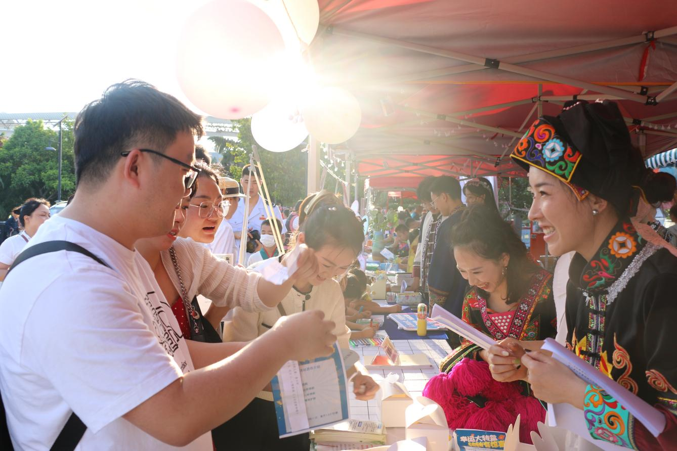 摊位上“商品”琳琅满目,减税降费热点政策、个税汇算清缴、住房出租转让等信息,广大市民关注的涉税知识抢答题库,城乡居民“两险”缴费指南、小微企业优惠政策等宣传手册,印制有税务元素的文创产品……西畴县税务局工作人员化身“销售员”,为前来摊位的市民讲解税宣“商品”,帮助市民了解学习税收知识,现场互动赠送小风扇、玩偶等精美伴手礼,并在现场留言板上“听心声、汇众智”,收集市民对税收工作的意见建议。