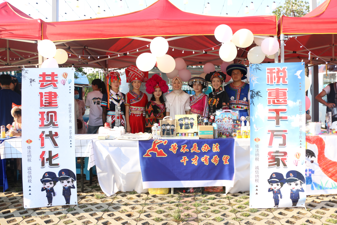 税务人员同时化身“服务专员”,邀请当地特色企业参与活动,现场销售腊肉、坪寨古树茶、金线莲酒制品、精致打火机等产品,以可吃可玩可观赏的推荐单元得到广大市民的青睐,通过“税动力”打通惠企利民新路径,展现“多彩税务”推动文化惠民、文化利企。