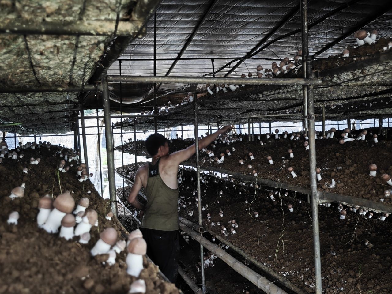 巴西菇又名姬松茸,营养丰富,其栽培时间短,从栽培到上市只需60天左右,一次性栽培,可长年采摘。据龙正村股份经济合作社负责人刘禹仲介绍,目前,合作社通过采取“公司+合作社+基地+农户”的发展模式,为社员提供建设资金支持、原材料采购及产品销售等服务,实现了“统一提供菌种、统一提供培养料、统一提供技术、统一价格收购、统一销售产品”的全程管理经营模式。