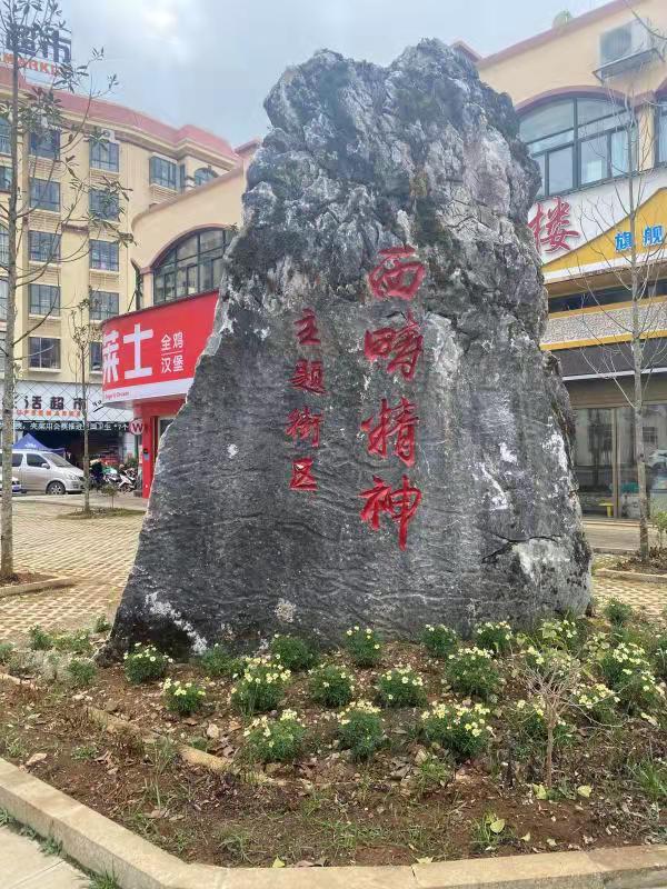 在建的金钟旭日广场内建有新时代“西畴精神”大型雕塑一座,并沿400余米长的街道设计安装了标志性LOGO和展示新时代“西畴精神”的中小型雕塑10余座,街道入口处安放主题街区标志石一块,主题街区一度成为群众“打卡”胜地;KTV、电影院等文化娱乐场所投放“西畴精神”短视频;县城90家企事业、行政单位相继设置“西畴精神”主题橱窗、展板、标语等300余板(条);官媒及各单位自媒体相继制作、推送关于“西畴精神”影音图文资料200余条;“西畴精神”报告文学正在创作撰稿、《石漠花开》主题电影开机摄制、《幸福花山》舞台剧成功出演、“西畴精神”典型故事连环画正在进行最后的审定,即将印制发行。