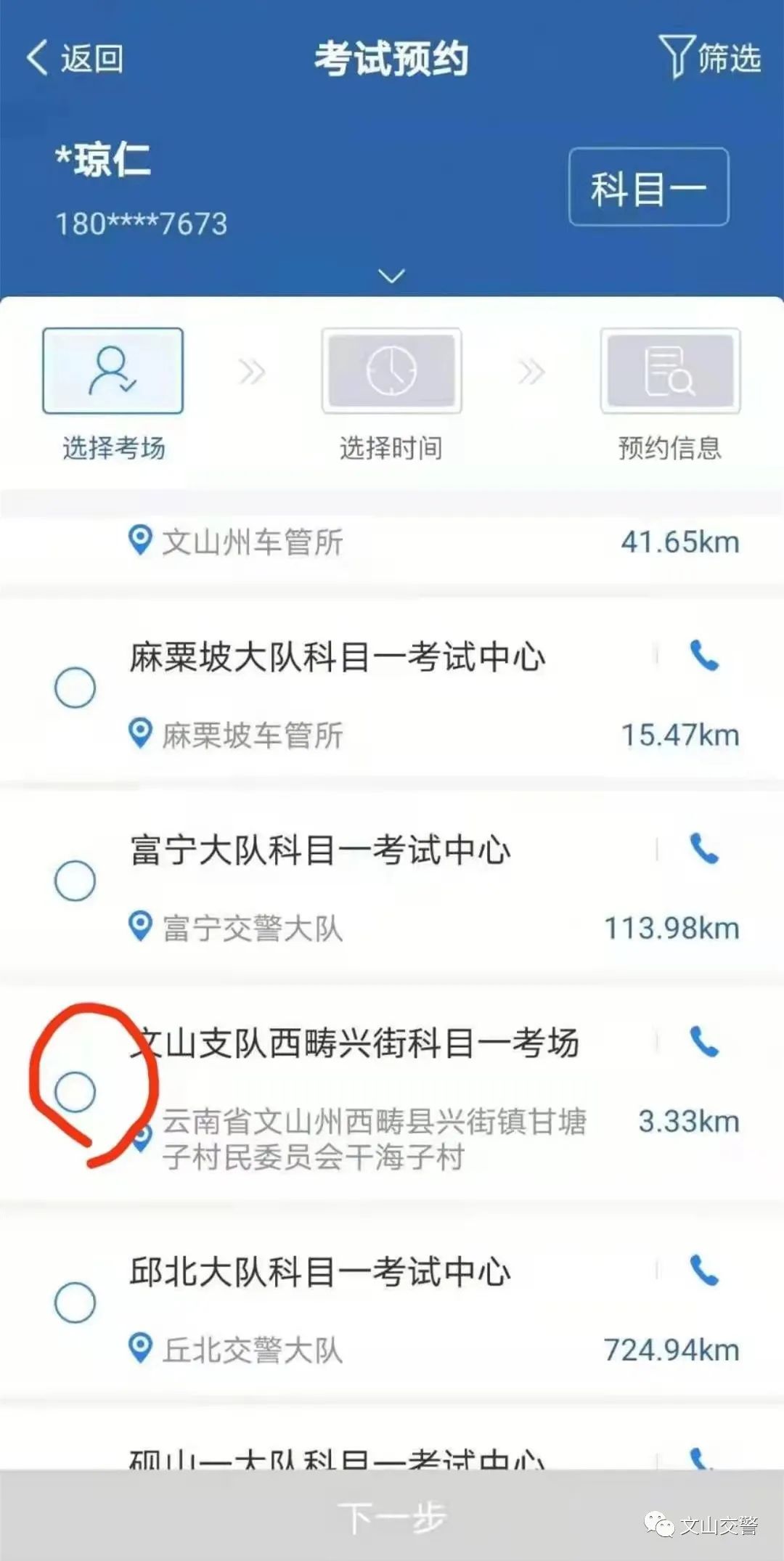 西畴兴街科目一考场 5月28日正式开考 这是文山州首家小型汽车 全科目考场 文网讯 为贯彻落实公安队伍教育整顿“我为群众办实事”活动,满足机动车驾驶人考试的需求,西畴兴街科目一考场经4个月建设完毕,经文山州公安局交警支队验收合格报省公安厅交警总队复核后,于5月28日正式开考汽车类科目一和安全文明驾驶考试。 学员们可以通过交管12123进行网络预约,步骤如下: 兴街考场是文山州首家小型汽车全科目考场!具备小型汽车类科目一、科目二、科目三和科目三安全文明驾驶考试。同时还可办理相关车驾管业务。 地址:文山州西畴县兴街镇甘塘子行政村干海子村。 (来源:文山交警) (编辑:郭韦 排版:龙俊贤 审核:李云淑)