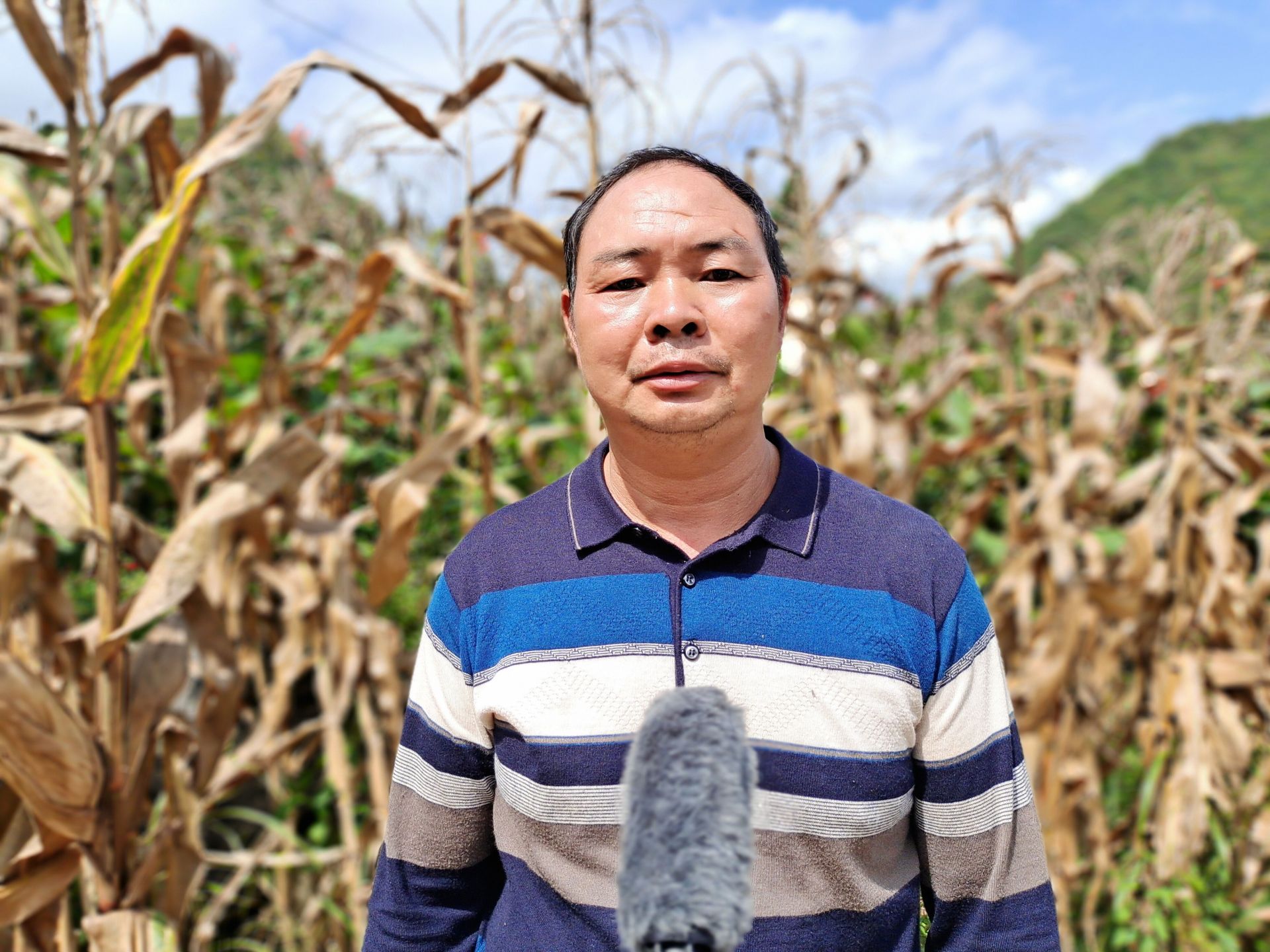 中午日头稍辣,西洒镇坝尾村委会金竹凹村小组的汪金贵将最后两袋采收好的玉米扛到路边堆码好,再用塑料布盖上,准备下午忙活完再找车拉回家。