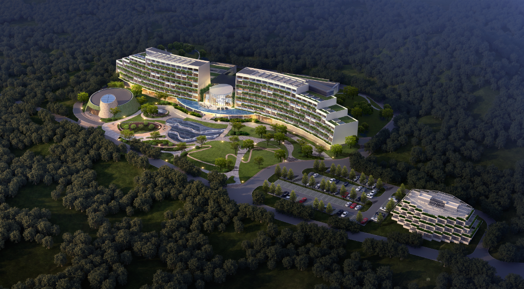 一期预计投资1亿元,计划建设主楼建筑基底面积7308.4平方米,副楼建筑基底面积701.15平方米。其中:主楼(酒店/办公/教室/展览馆)地下建筑面积2826.49平方米;二期预计投资0.8亿元,主楼计划建设标准双床房124间、星空大床房16间、套房3间;副楼(管理用房)职工用房37间、管理用房1间、厕所6间。共设机动车车位(室外)146辆、非机动车车位(室内)366辆。
