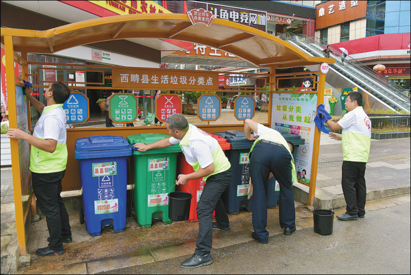 连日来,西畴县组织动员广大党员干部及群众参与创建“美丽县城”活动。参与活动的志愿者们穿梭于集镇街道,向街道两边的商户宣传共创“美丽县城”的重要意义,同时手拿火钳、垃圾袋沿街清理、打扫裸露垃圾。图为志愿者正在清理街道卫生。
