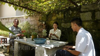 泡好一壶清茶,叶传荣打开了话匣子。“我今年71岁,有46年党龄,1978年从部队退伍回来以后就一直在村班子,一干就是43年,直到去年才退下来。”叶传荣言语间满是自豪,“前些年主要抓温饱,忙生活,现在好了,我们还要生活得有质量。”叶传荣边说边指向头顶的葡萄架,“你看,葡萄树下喝茶聊天,这小日子不比城里差啊。”大家笑起来,都说这环境条件确实好。