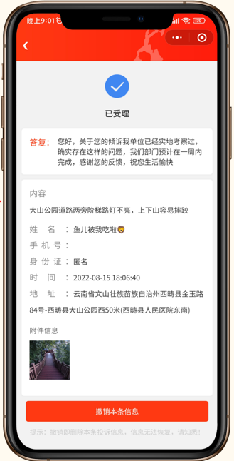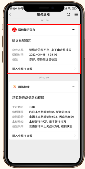 今后,当地群众只需用微信扫码进入小程序,即可通过平台操作提示,进一步选择各项功能进行投诉。