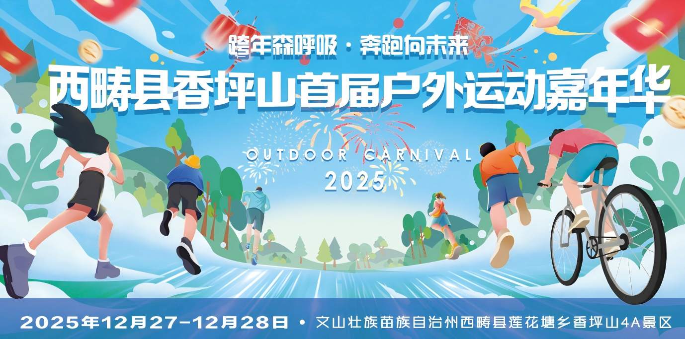 你是否想挣脱城市的喧嚣,在满目翠绿的森林中,用一场酣畅淋漓的奔跑迎接崭新一年吗?12月27日—28日,西畴县香坪山国家4A级景区首届户外运动嘉年华重磅启幕,这里不仅有热血沸腾的多元赛事、浓郁醇厚的民族年味,更有藏在95%森林覆盖率里的绝美赛道,邀你用脚步丈量自然,用奔跑迎接新年!