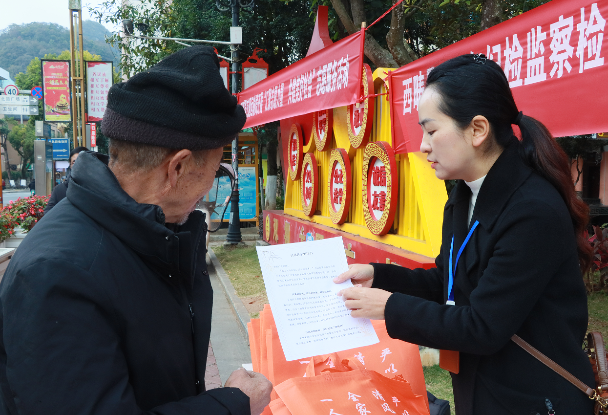清晨的集市,人声鼎沸,一派烟火气息。西畴县纪委监委的干部们穿梭其间将一份份设计清新、内容恳切的《清风传家倡议书》递到群众手中。“大叔,您瞧瞧这份倡议书,家风正了,家里才能和和美美、万事兴旺啊!”亲切的乡音,朴实的道理,伴着冬日的暖阳,把“清廉”的种子悄然播撒在群众心间。这生动的一幕,正是该县纪委监委深耕家风建设、厚植廉洁文化的一个生动缩影。