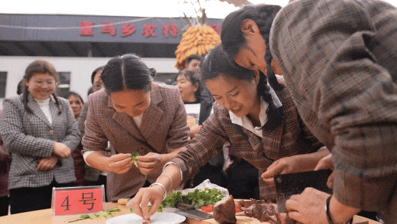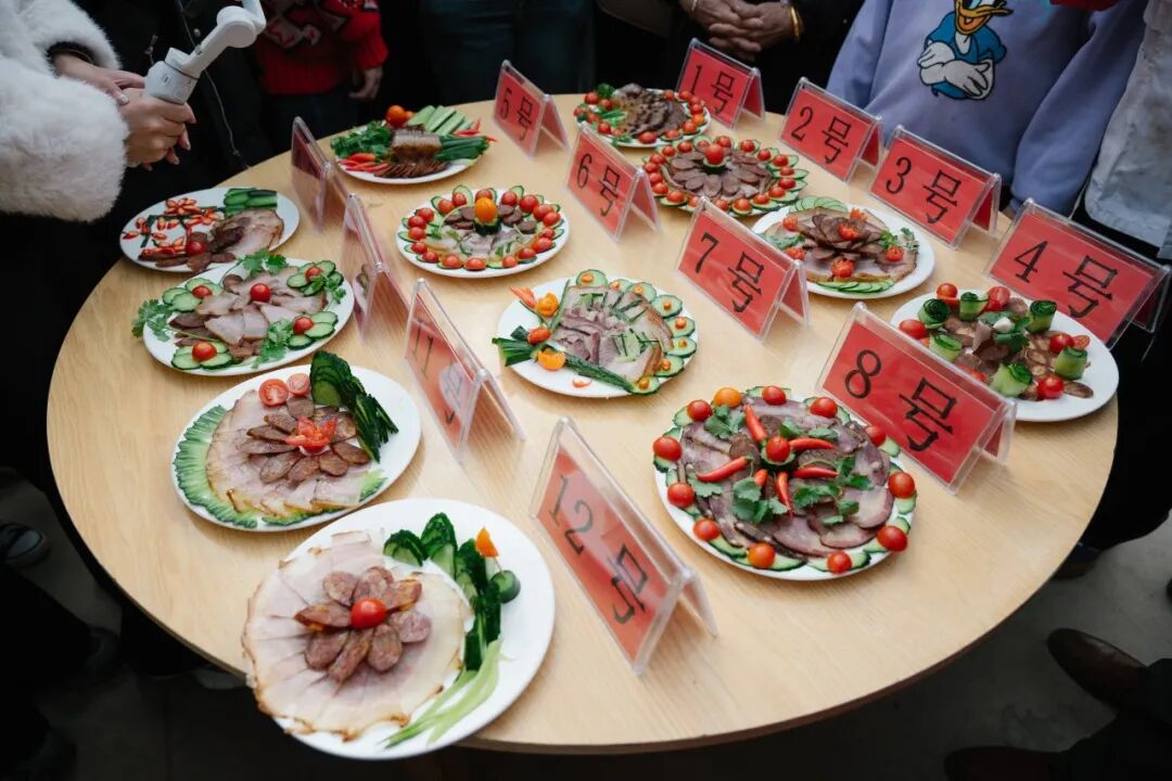 “哥俩好啊,七飘飘啊……”在一声声划拳声中,下午的“酒歌传情”祝酒歌划拳挑战赛正式开赛,本次划拳比赛以6人组队形式进行,意在游戏中传承当地深厚的待客文化。划拳比赛后举行的“花样巧切·盘中功夫”厨艺比拼,则让参赛团队以董马腊肉等食材进行创意摆盘,展现民间厨艺的趣味与巧思。
