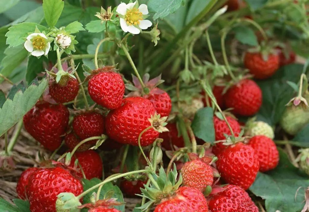 一排排绿色苗圃开出白色小花,挂果的草莓红着“脸”,莓香萦绕在整个大棚,让人垂涎欲滴。