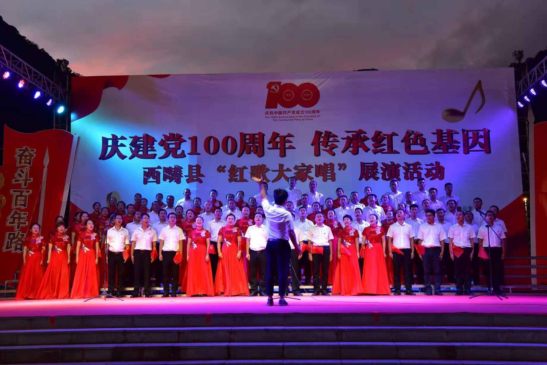 文网讯 为隆重庆祝中国共产党成立100周年,唱响共产党好、社会主义好、改革开放好、伟大祖国好、各族人民好的时代主旋律,6月27日,西畴县在北回广场举行了“庆建党100周年 传承红色基因——红歌大家唱”群众性文化展演活动。 西畴县县级各单位共组成48支队伍,2000余名干部职工、师生参加活动。用歌曲唱响爱党、爱国的主旋律,《我和我的祖国》《唱支山歌给党听》《团结就是力量》……精心排演的节目赢得满堂喝彩。这是革命先辈义无反顾为民奋斗、舍生忘死追求真理的激情回响;歌声歌颂党、歌颂祖国,歌唱美好幸福新生活,是后来者铭记历史,珍惜当下,奋勇向前的铿锵足音。西畴大地处处响起嘹亮的歌声,那是幸福的歌声,是感恩的歌声,是奋斗的歌声。展现了西畴昂扬向上的精神风貌和永远跟党走的信仰追求。 演出结束后,全场参与活动的干部职工和前来观看的群众,纷纷举起手中的党旗,激情地唱响《歌唱祖国》,表达了对党和祖国的无比忠诚与深情厚谊,以歌共同祝愿伟大的共产党、伟大的祖国更加繁荣昌盛。 (蒋天辉 侯应仙摄影报道) (编辑:郭韦 排版:钟晓明 审核:资云波)