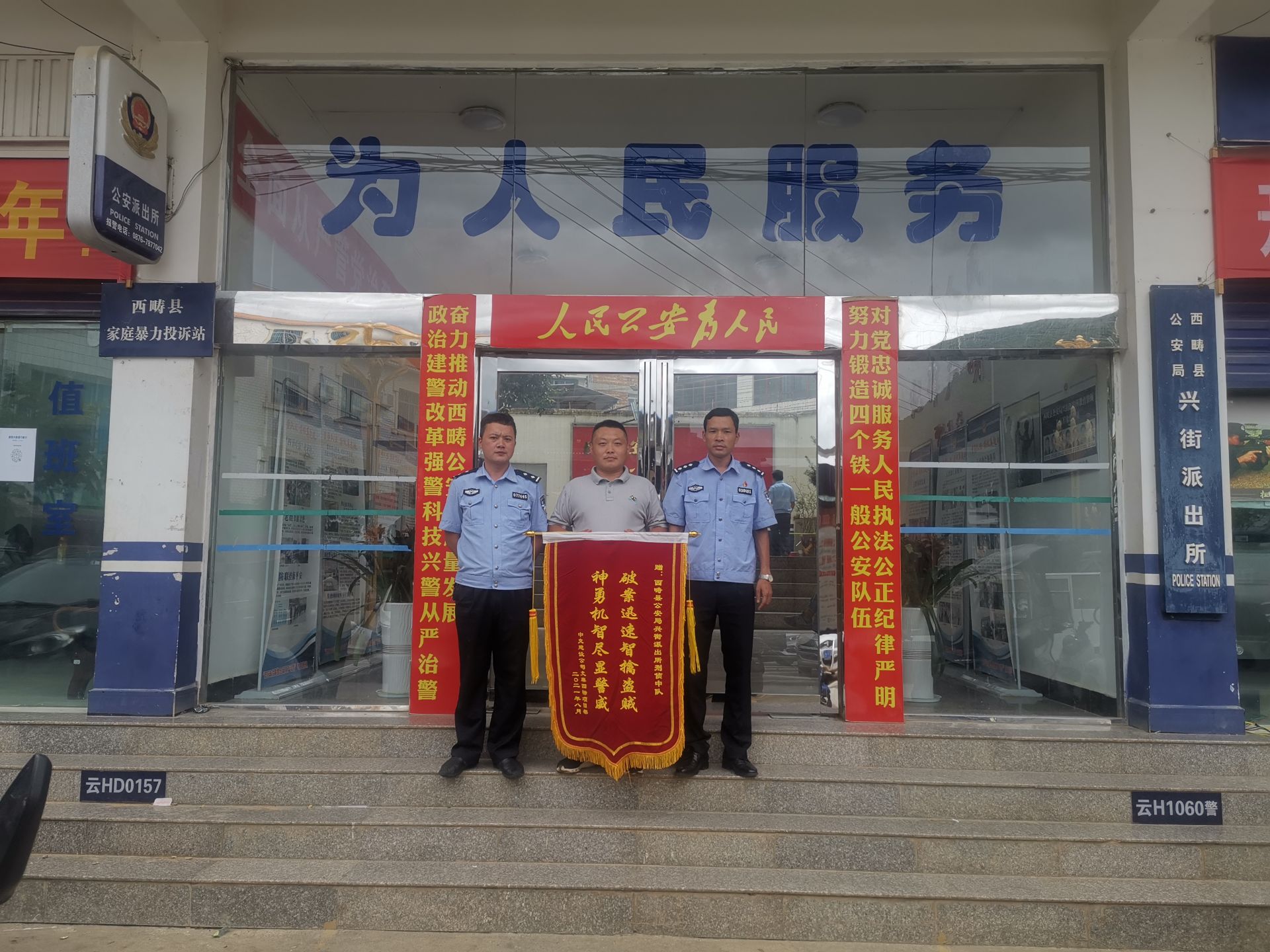 文网讯 8月17日,一位市民手捧印有“破案迅速智擒盗贼、神通机智尽显警威”的锦旗,来到西畴县公安局兴街派出所,感谢民警快速破案,为其追回被盗物品。