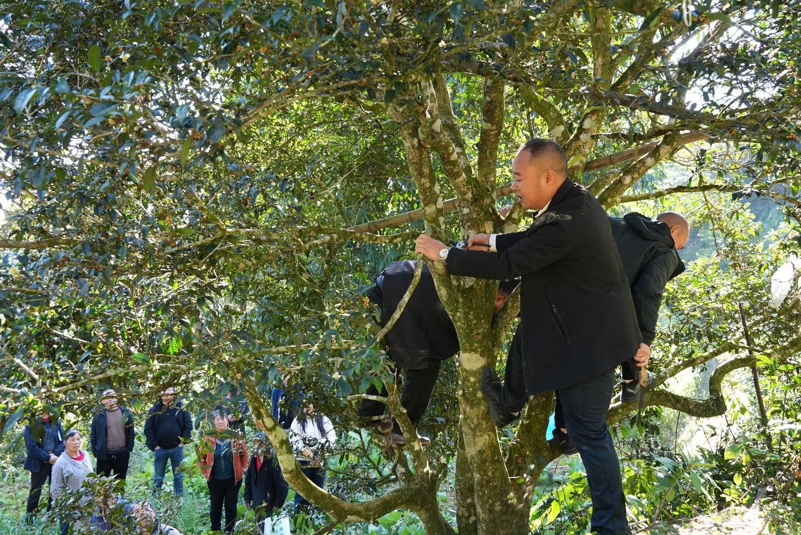 在修剪技术讲解环节,专家通过实地操作示范,展示了古茶树轻剪、疏剪等不同修剪方式和操作技巧。“修剪的目的是调整树形,改善通风透光条件,促进养分集中供给。”专家边修剪边说。