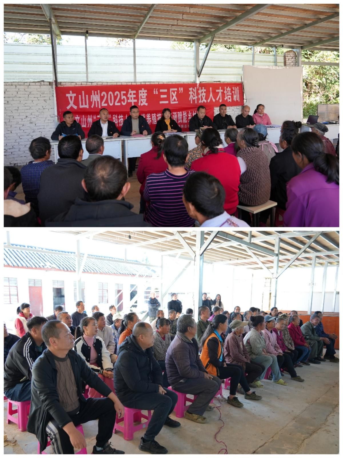 文网讯 11月25日,在西畴县法斗乡脱皮树村委会太阳寨村小组活动室院坝上,50余名群众仔细聆听着专家的讲授。这场来到群众身边的培训是文山农业学校联合文山州农科院、文山州土肥站、西畴县林业局、西畴县科协、西畴县职中举办的2025年度“三区”科技人才培训。