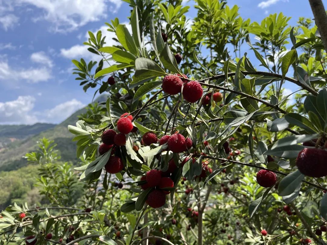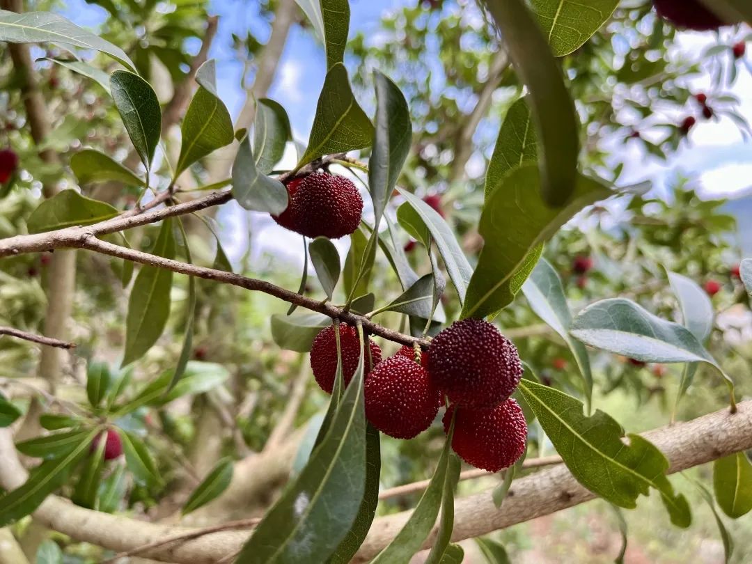 一簇簇红玛瑙般的杨梅缀满枝头