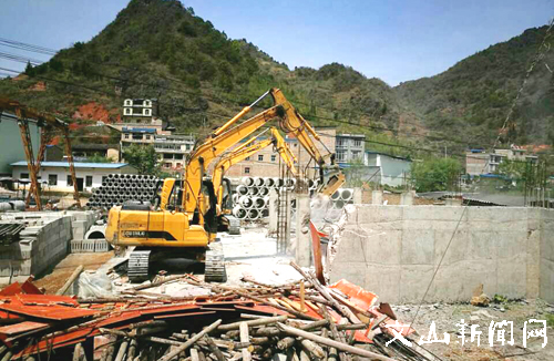 文网讯 为全面加强对违法违章建筑的清理整治力度,全力遏制新的违法违章建筑行为,切实维护法律尊严,规范建设秩序。3月29日上午,西畴县对兴街镇二期开发弯腰树片区未按期拆除的补偿房屋及两违建筑依法进行强制拆除,打响2017年该县两违拆除工作的第一枪。