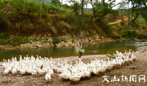 文网讯 西畴县鸡街乡胡迪自然村的周国仙家,在外打工十多年,一直是帮人干各种各样活计。去年,夫妻俩回到家里投资了8万多元建起养鹅基地,养殖了300多只鹅,通过不断繁殖发展,目前养鹅规模将近1000只。目前,已销售近100只鹅,每市斤15元,预计今年收入5万余元。在自家养鹅发家致富的同时,夫妻俩还打算带领更多的乡亲参与到养鹅发家的行列中。