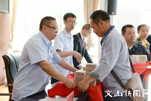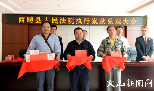 文网讯 5月26日,西畴县人民法院召开“迅雷行动”第一次执行案款兑现大会,以现金的形式集中为执行申请人兑现案件款324.98万元。