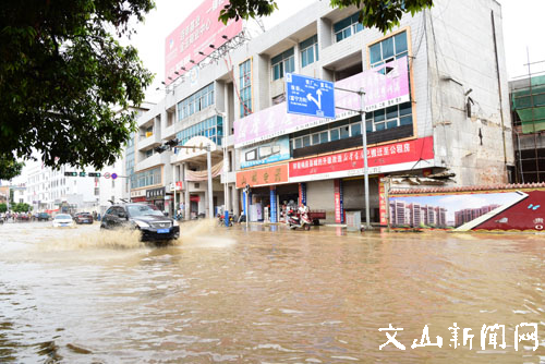 文网讯 6月6日下午1点,西畴县城区普降暴雨,40分钟时间,城内多数路段被积水淹。城金玉路、普兰路路面积水,从街头冲下来的杂物严重堵塞排水道,雨水与积水相汇,漫过路基,直接威胁到过往行人员和车辆安全。居民迅速对受阻的沟渠和排水道进行了疏通。图为金玉路路段被积水淹现场。