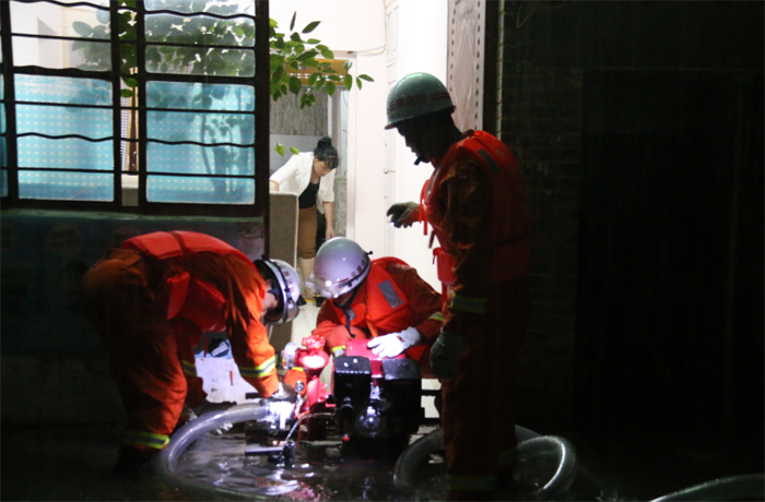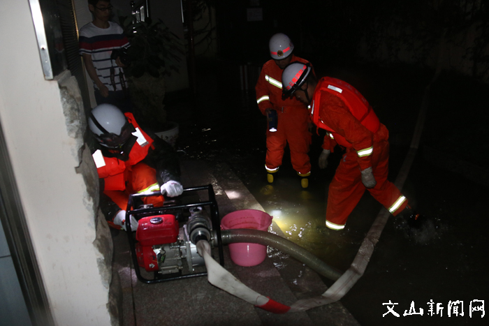24日18时至25日5时,西畴县消防大队接到了5起县城居民因内涝受灾的报警电话,紧急出动6辆消防车,调配消防官兵35人次投入抢险救灾。