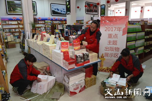 文网讯 11月6日一大早,西畴县新华书店工作人员将一批新到的十九大学习读物摆上柜台。这批读物有《中国共产党章程》、《中国共产党第十九次全国代表大会文件汇编》、《十九大报辅导读本》、《十九大报告》等。西畴新华书店在显著位置精心布置主题书柜,方便读者选购十九大相关书籍。党员干部群众踊跃购买、认真学习。