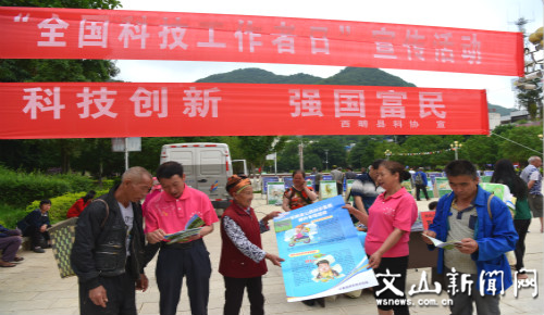 文网讯 5月21日,西畴县科技活动周启动, 西畴县科协、老科协、农科、教育、卫生等10余单位,在县城北回广场开展“2018年全国科普周”宣传活动。