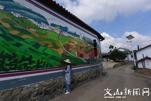 文网讯 2018年以来,西畴县把美丽乡村建设与脱贫攻坚、新农村建设、农村人居环境综合整治等工作紧密结合起来,充分发挥群众主体作用,引导他们主动参与发展经济、保护环境、丰富精神文化生活,在产业美、环境美、治理美、人文美方面实现“一村一品”“一村一特”,推动美丽乡村从“一片美”向“整体美”、从“外在美”向“内在美”、从“环境美”向“发展美”、从“一时美”向“持久美”提质升级,打造宜居宜业宜游的幸福家园。图为在兴街镇多依坪村老师正在美画家园。