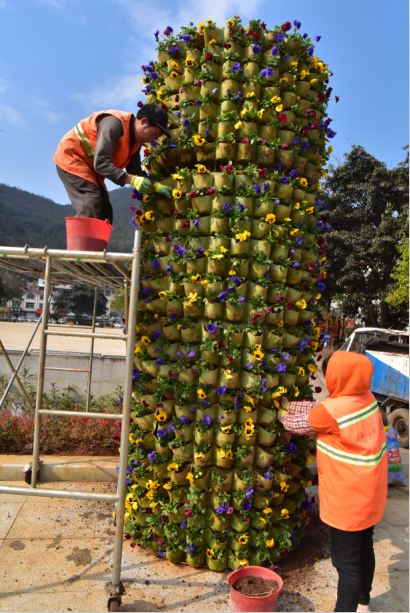 2月3日,西畴县城街上,群众选购新衣、舂粑粑,工人在广场装花篮等。随着春节临近,西畴县书店、超市、大街上、乡镇集市年味越来越浓,牛年生肖、对联、红灯笼、中国结等年货引来许多群众购买,为即将到来的春节增添了喜庆色彩。