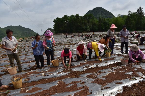在蚌谷乡么洒梁子中寨、下寨、矛草地等村践行绿水青山就是金山银山理念,积极调整产业结构,因地制宜大力发展中药材等绿色生态产业,通过推进土地流转支,持大户发展中药材种植,带领群众致富,助推乡村振兴。引进西畴百汇药材林果种植有限公司发展中药材产业,目前,该公司已经种植中药材800余亩,包括重楼、苦参、三七等,带动上百人增收。在基地内每天都有100多个村民有说有笑话苦参:“中药材种出了新财路,我们致富信心更足了!”现在种植一天药材,领着70元工资,村民乐得合不拢嘴。图为 6月11日西畴县老科技工作者协会现场培训确保增收。