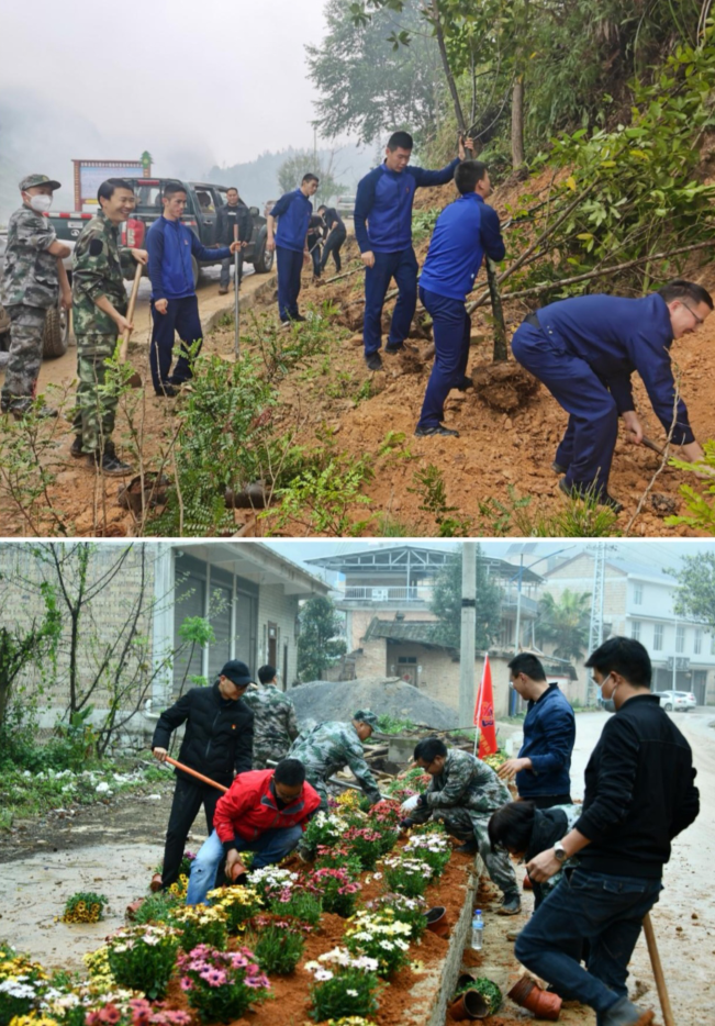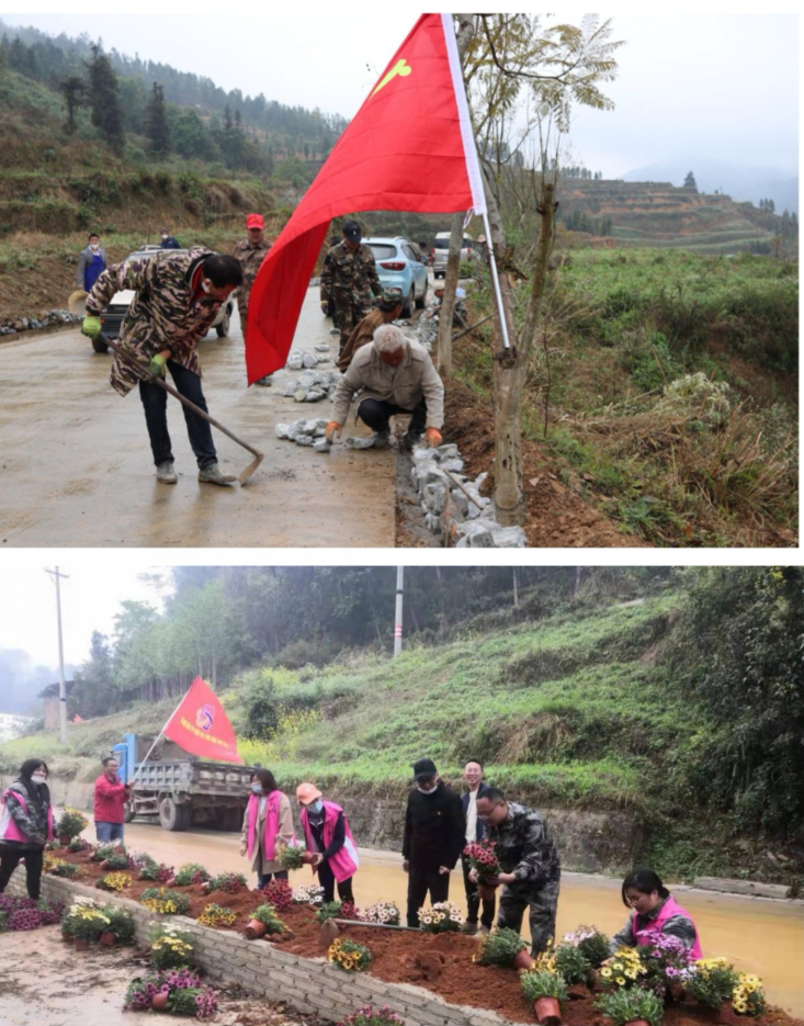 活动现场,大家有的挥锄挖坑,有的培土栽树,干得热火朝天。种植大军分3个路段18个小组,沿莲花塘村至小锡板村路段线4.5公里,回填种植800立方米,支砌花台4100米,种植花卉4000株、树100余株。