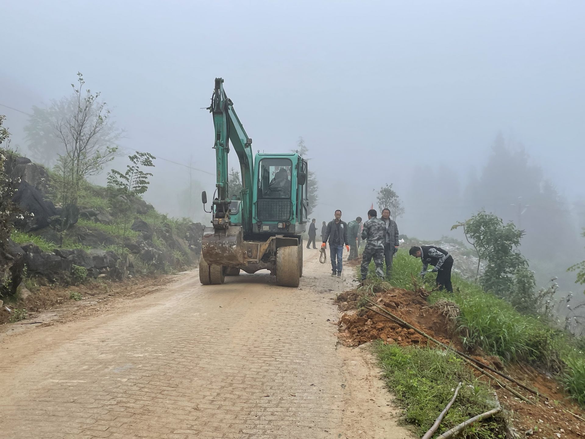 清晨,上寨村小组热闹极了,发动机的轰鸣声中,驾驶员正操纵着挖掘机,在工作人员的配合下挖掘苗坑、卸载苗木、栽种苗木。只见苗木从货车上卸下后,用绳子绑好,挂载到挖掘机铲上,再移动至挖好的苗坑前,有了挖掘机的“帮忙”,节省了干部群众的不少力气。