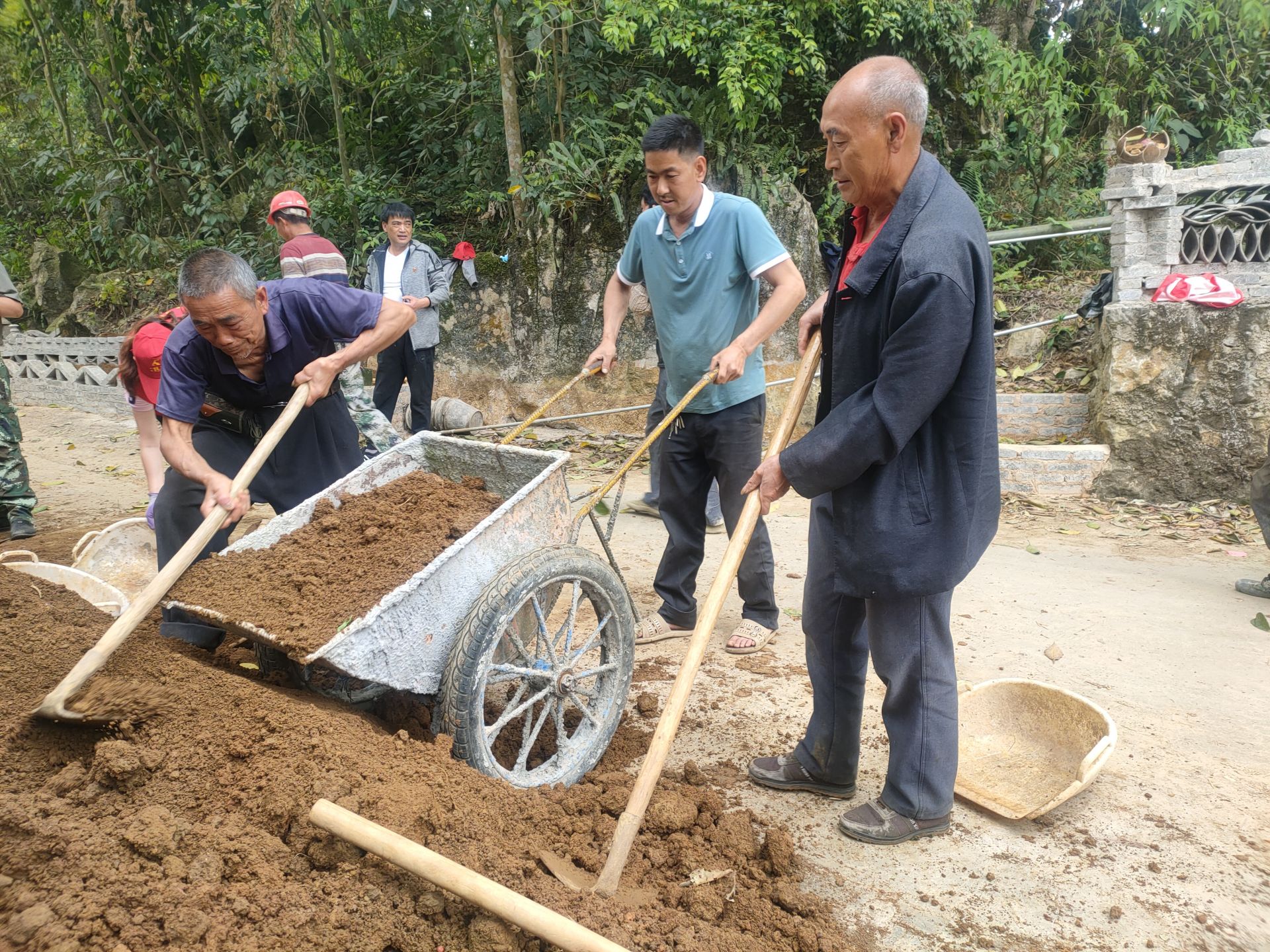 模范带动,激发活力。不忘初心、牢记使命、扛起担当,共建美丽家园。年近70的老党员赵元明、王忠友、刘仕云,用他们的行动感染带动大家,一锄一铲都代表着共产党员责任的传递。此次主题党日活动,是对年轻党员干部开展的一次心灵洗礼,新寨村的老党员用实际行动为参与活动的党员干部上了一堂生动的党课,同时也为乡属党员干部、农村党支部党员、群众搭建了互帮互助的平台。党员干部下沉作战,通过强有力的实际行动,让“政府干、百姓看”的现象得到明显改变,使群众思想意识完成了从“看戏”到“唱戏”的身份转变,营造出“相信党委、干群齐心”的浓厚氛围。