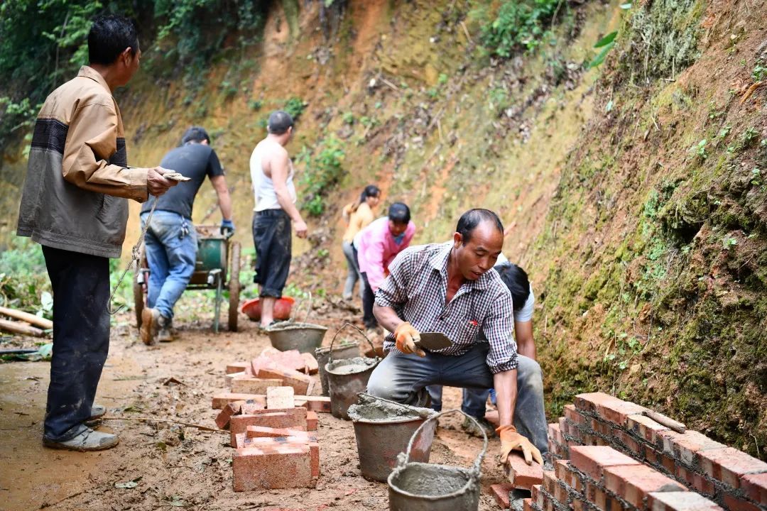 走进莲花塘乡芦差冲村寨子村小组,一派喧闹的施工场面映入眼帘:有的群众在拌砂浆,有的在搬运建筑材料,有的在堆砌花台,还有的在修筑排水沟……现场一片繁忙景象。