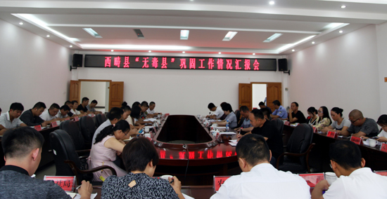 下午,西畴县“无毒县”巩固工作情况汇报会召开。会上,省禁毒委考评工作组听取了西畴县2017至2018年度“无毒县” 巩固工作情况汇报,对西畴县禁毒工作给予了充分肯定,对下一步工作,考评组要求,要进一步提高政治站位,加强认识巩固“无毒县”工作对促进禁毒工作的重要意义,提升各禁毒成员单位思想认识,牢牢把握当前毒情形势。进一步增强 “无毒县” 巩固工作的决心和信心,强化社区戒毒、社区康复工作措施,推进禁毒预防教育。进一步健全完善具有西畴特色的“无毒县” 巩固工作机制,充分发挥禁毒办职责,积极协调联动各禁毒成员单位齐抓共管,形成强大合力。进一步夯实禁毒工作基础,深入推进云南省第四轮禁毒人民战争、“6.27” “8.31”工程,为新中国成立70周年营造安全稳定的社会环境。